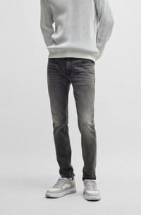 SIZE AND FIT The model wears a size 32/32 and is 6'2" tall with a, 35" chest, 27" waist and 35" hips. DETAILS HUGO 734 - 50530591 Casual jeans cut to a super-slim fit by HUGO Menswear. Crafted in stretch denim, this mid-rise pair is delivered in a versatile gray tone. Extra-slim fit Mid rise Button and zip closure Pockets bottom front: Side pockets Skinny leg Pockets bottom back: Patch pocket Standard length Fit foot width: 34,0 cm (13.4 inches) QUALITY & CARE INSTRUCTIONS Iron Medium Heat Do Not Tumble Dry Do Not Bleach Machine Wash Cold Gentle Quality: 99% Cotton (5% recycled), 1% Elastane, pocketing: 100% Cotton Do Not Dry Clean