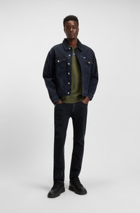 SIZE AND FIT The model wears a size 32/32 and is 6'2" tall with a, 35" chest, 27" waist and 35" hips. DETAILS Zane - 50541548 With a black wash and dark-blue sheen, these HUGO Menswear jeans are a solid casual building block. Slim-fit jeans in stretch denim Extra-slim fit Mid rise Button and zip closure Pockets bottom front: Side pockets Skinny leg Pockets bottom back: Patch pocket Standard length Fit foot width: 34,0 cm (13.4 inches) QUALITY & CARE INSTRUCTIONS Do Not Bleach Do Not Dry Clean Machine Wash Cold Gentle Iron Medium Heat Do Not Tumble Dry Quality: 99% Cotton (20% recycled), 1% Elastane, pocketing: 100% Cotton