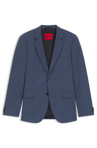 DETAILS Arti253X - 50544715 With an easy-to-style texture, this HUGO Menswear suit jacket is crafted in flexible dobby cloth with wool. Sharp ultra-slim fit. Extra-slim fit Notched lapels Number of buttons: 2 Welt chest pockets Inside jet pocket with button Side vent Fully lined Fit back length: 72 cm (28 inches) QUALITY & CARE INSTRUCTIONS Reduced Dry Clean Quality: 54% Polyester, 44% Virgin wool, 2% Elastane, Lining: 100% Polyester, Sleeve lining: 100% Polyester Do Not Bleach Do Not Tumble Dry Do Not Wash Iron Low Heat