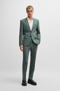 SIZE AND FIT The model wears a size 38R and is 6'2" tall with a, 35" chest, 27" waist and 35" hips. DETAILS Arti232X - 50530151 A modern suit jacket by HUGO Menswear, with an extra-slim profile. This piece is crafted in super-stretch poplin made from a wool blend. Extra-slim fit Notched lapels Number of buttons: 2 Welt chest pockets Pockets top: Flap pockets Button cuffs Side vent Fully lined Fit back length: 72 cm (28 inches) QUALITY & CARE INSTRUCTIONS Iron Low Heat Quality: 51% Wool, 44% Polyester, 5% Elastane, Lining: 100% Polyester, Sleeve lining: 100% Polyester Do Not Wash Reduced Dry Clean Do Not Bleach Do Not Tumble Dry
