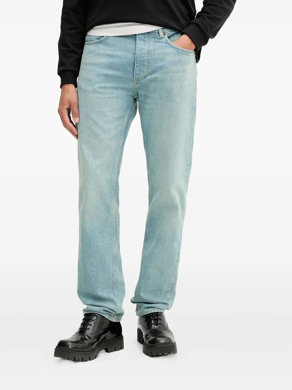 faded-wash jeans Highlights - Light blue - Faded wash - Five-pocket styling - Button fly - Leather logo patch Imported Composition Cotton 100%