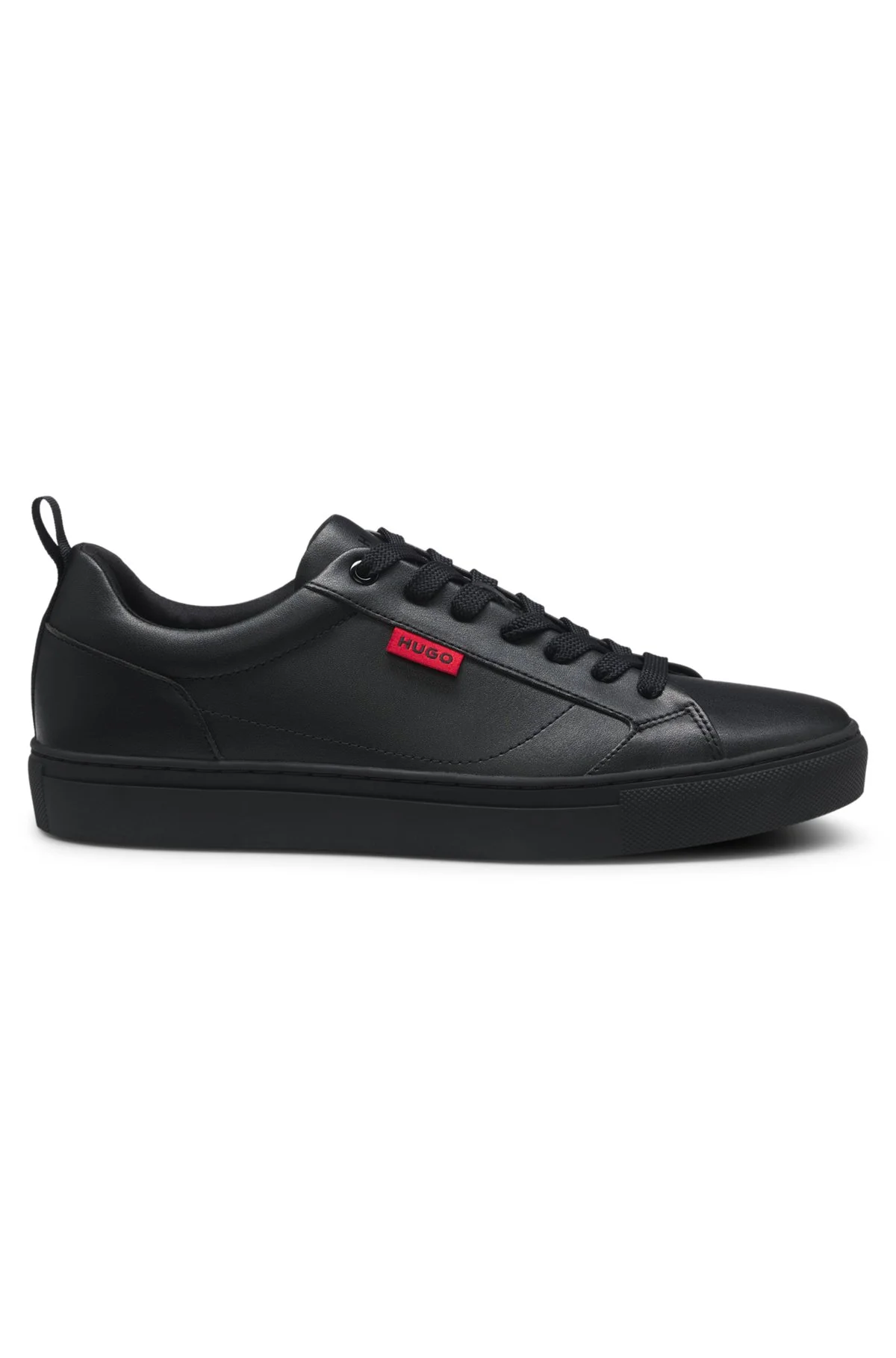 FAUX-LEATHER TRAINERS WITH RED LOGO FLAG