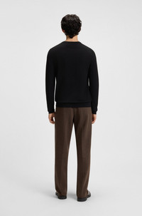 SIZE AND FIT The model wears a size M and is 6'1" tall with a, 32" chest, 27" waist and 33" hips. DETAILS San Cody-CV - 50532074 A crew-neck sweater by HUGO Menswear. Ideal for layering, this piece is knitted in soft yarns and cut to a slim fit. Regular fit Neckline: Crew neck Long sleeves Standard length QUALITY & CARE INSTRUCTIONS Iron Low Heat Quality: 72% Viscose, 28% Polyester Machine Wash Cold Gentle Do Not Bleach Do Not Tumble Dry Do Not Dry Clean