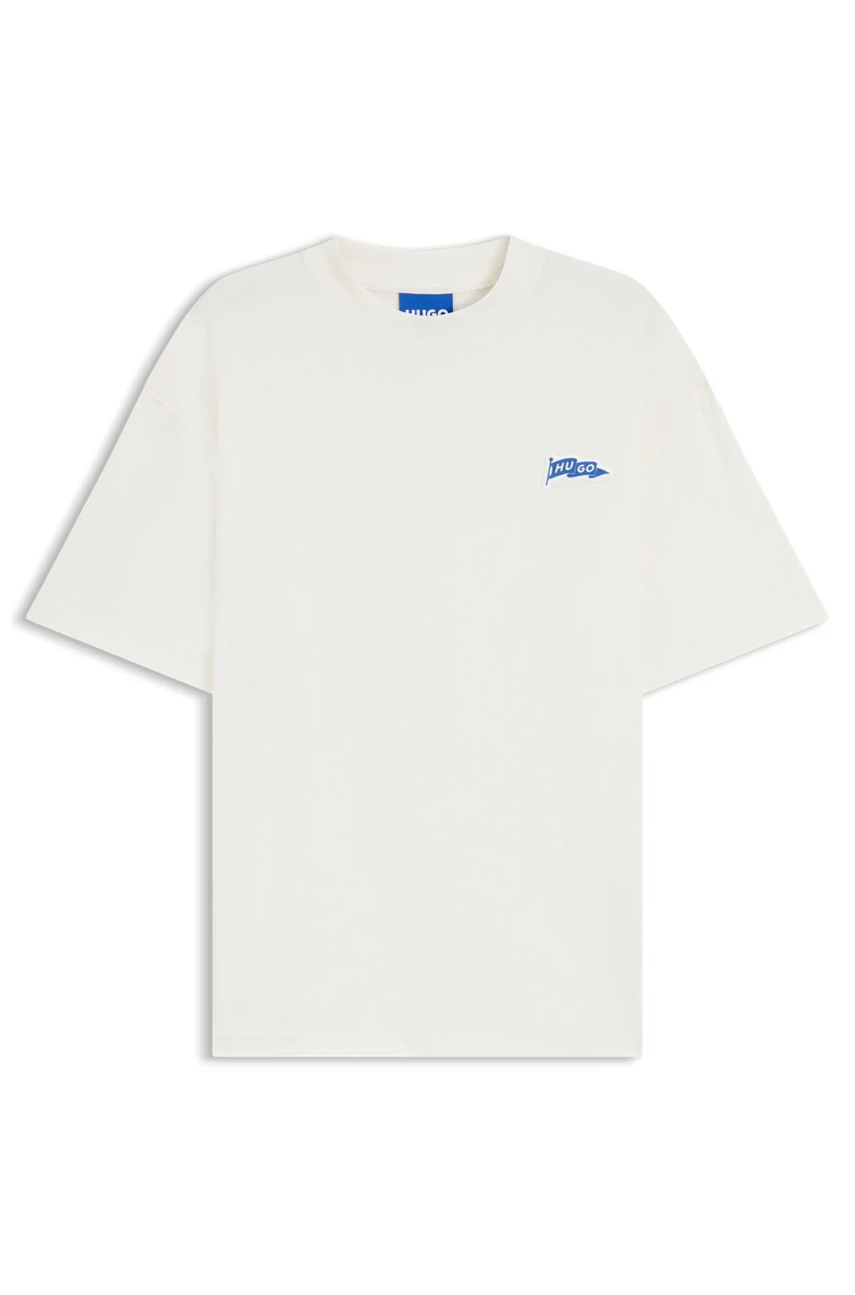 SIZE AND FIT Relaxed fit The model wears a size M and is 6'2" tall with a, 35" chest, 27" waist and 35" hips. DETAILS In lightweight cotton jersey, this HUGO Menswear T-shirt is detailed with a logo flag for a fresh look. Cut to an easy loose fit. loose fit Neckline: Crew neck Short sleeves Side slit Standard length Nohatio - 50556411 QUALITY & CARE INSTRUCTIONS Iron Low Heat Material: 100% Cotton Do Not Bleach Reduced Dry Clean Do Not Tumble Dry Machine Wash Cold Gentle