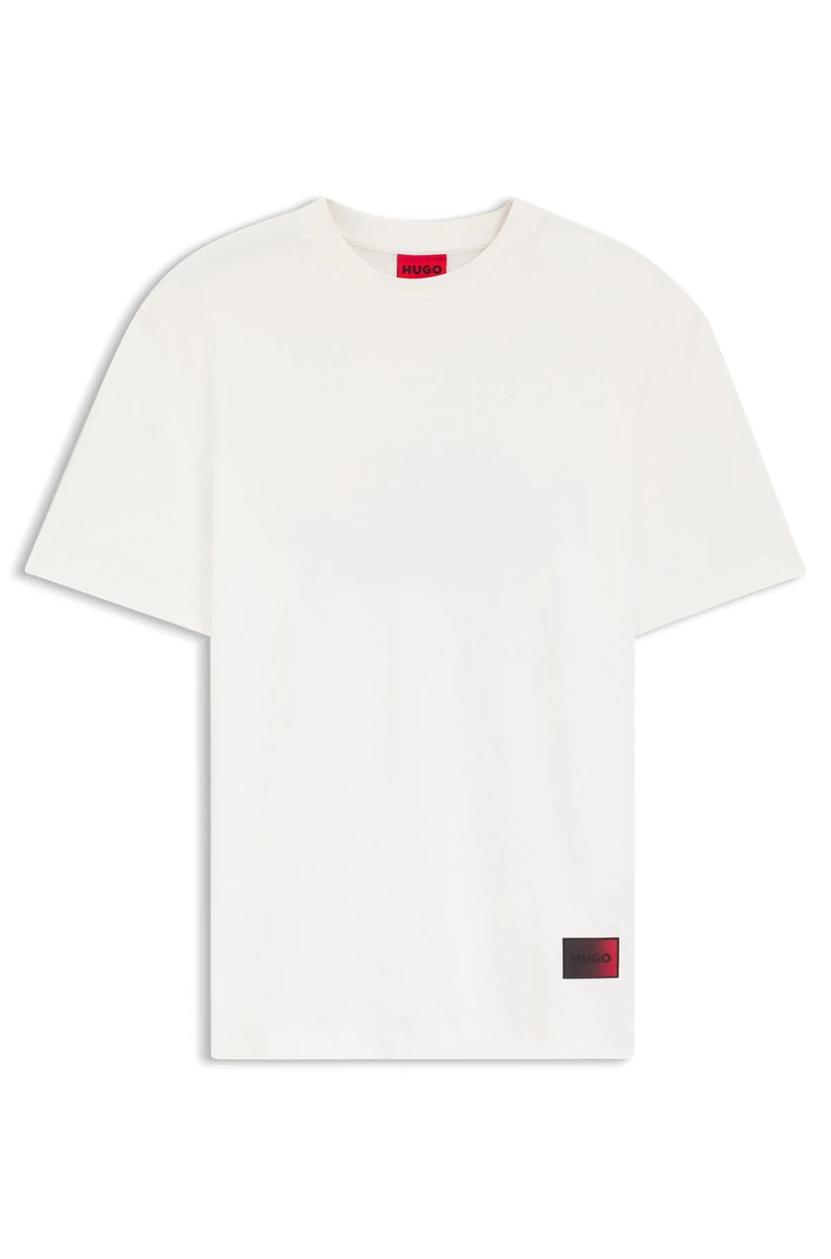 SIZE AND FIT The model wears a size L and is 6'2" tall with a, 35" chest, 28" waist and 36" hips. DETAILS With gradient-logo patches front and back, this HUGO Menswear T-shirt adds impact to everyday looks. Crafted in soft cotton. Relaxed fit Relaxed fit Neckline: Crew neck Short sleeves Danoto - 50553144 QUALITY & CARE INSTRUCTIONS Do Not Tumble Dry Material: 100% Cotton Machine Wash Cold Gentle Iron Low Heat Do Not Bleach Do Not Dry Clean