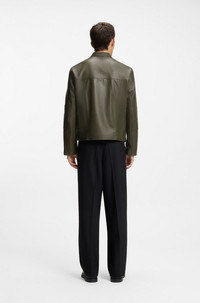 DETAILS Go from work to weekend in this leather jacket from HUGO Menswear. Cleanly styled with a stand collar and slim fit. Slim fit Stand collar Stand collar Fastening top: Zip closure Pockets top: Side-entry pockets Inside zip pockets Fully lined Standard length Lokis-3 - 50540984 QUALITY & CARE INSTRUCTIONS Do Not Bleach Do Not Wash Material: 100% Goat leather, Lining: 100% Polyester, Sleeve lining: 100% Polyester Do Not Tumble Dry Do Not Iron Reduced Dry Clean