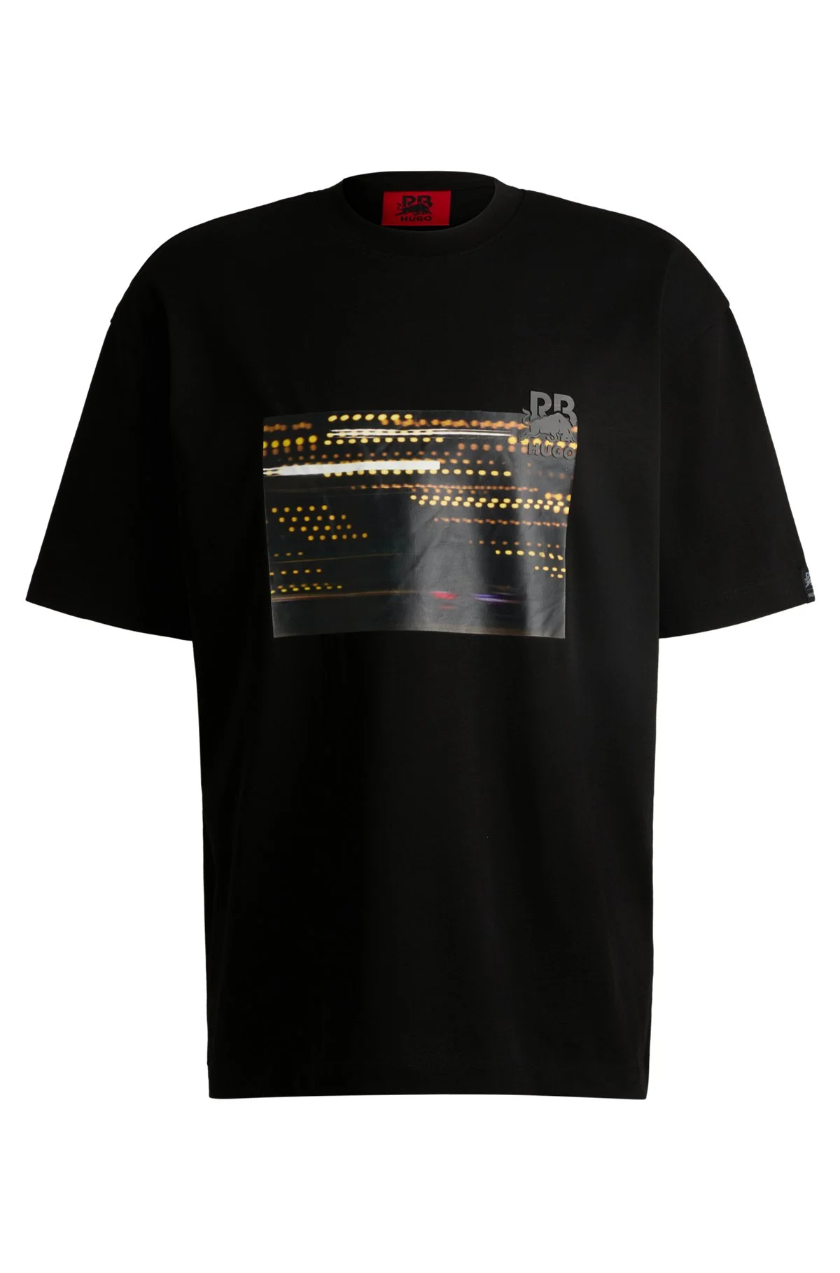 HUGO X RB COTTON-JERSEY T-SHIRT WITH RACING PRINT