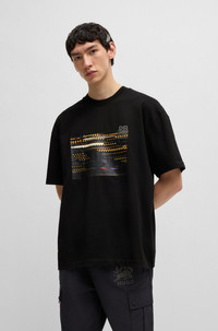 SIZE AND FIT The model wears a size M and is 6'0" tall with a, 33" chest, 27" waist and 35" hips. DETAILS Daveley_RB - 50545125 With its oversize fit and statement racing print, this men's HUGO x RB T-shirt adds impact to a casual look. Crafted in soft cotton jersey. Celebrate the thrill of motorsports with this unique product from the high-octane collaboration between HUGO and the Visa Cash App Racing Bulls Formula One™ Team. Neckline: Crew neck Standard length QUALITY & CARE INSTRUCTIONS Do Not Dry Clean Iron Low Heat Quality: 100% Cotton Do Not Tumble Dry Do Not Bleach Machine Wash Cold Gentle