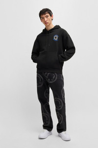 SIZE AND FIT The model wears a size M and is 6'0" tall with a, 33" chest, 27" waist and 35" hips. DETAILS Nothentico - 50524319 A statement hoodie by HUGO, printed with seasonal artwork at the front and back. This straight-fit style is designed in soft French terry cotton. Regular fit Neckline: Hooded Pockets top: Kangaroo pocket Long sleeves Ribbed cuffs Standard length QUALITY & CARE INSTRUCTIONS Quality: 100% Cotton Iron Low Heat Do Not Bleach Do Not Tumble Dry Machine Wash Cold Gentle Do Not Dry Clean