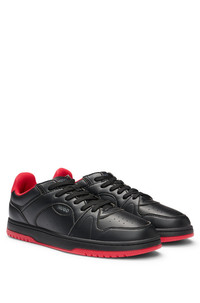 DETAILS Hadrian_Tenn_pugr - 50529896 Statement sneakers by HUGO, featuring tonal logo branding on the sides and heel counters. Vibrant pops of red create a bold look from every angle. Synthetic coated fabric, sometimes referred to as faux leather, is a fabric designed to resemble real leather, and/or display a matte, glossy, smooth, or textured, coated appearance. Laces Fully lined Packaging: Box QUALITY & CARE INSTRUCTIONS Upper material: 60% Polyester, 40% Polyurethane, Lining: 100% Polyester, Sole: 100% Rubber, Facing: 90% Polyester, 10% Polyurethane, Innersole: 90% Polyester, 10% Polyurethane
