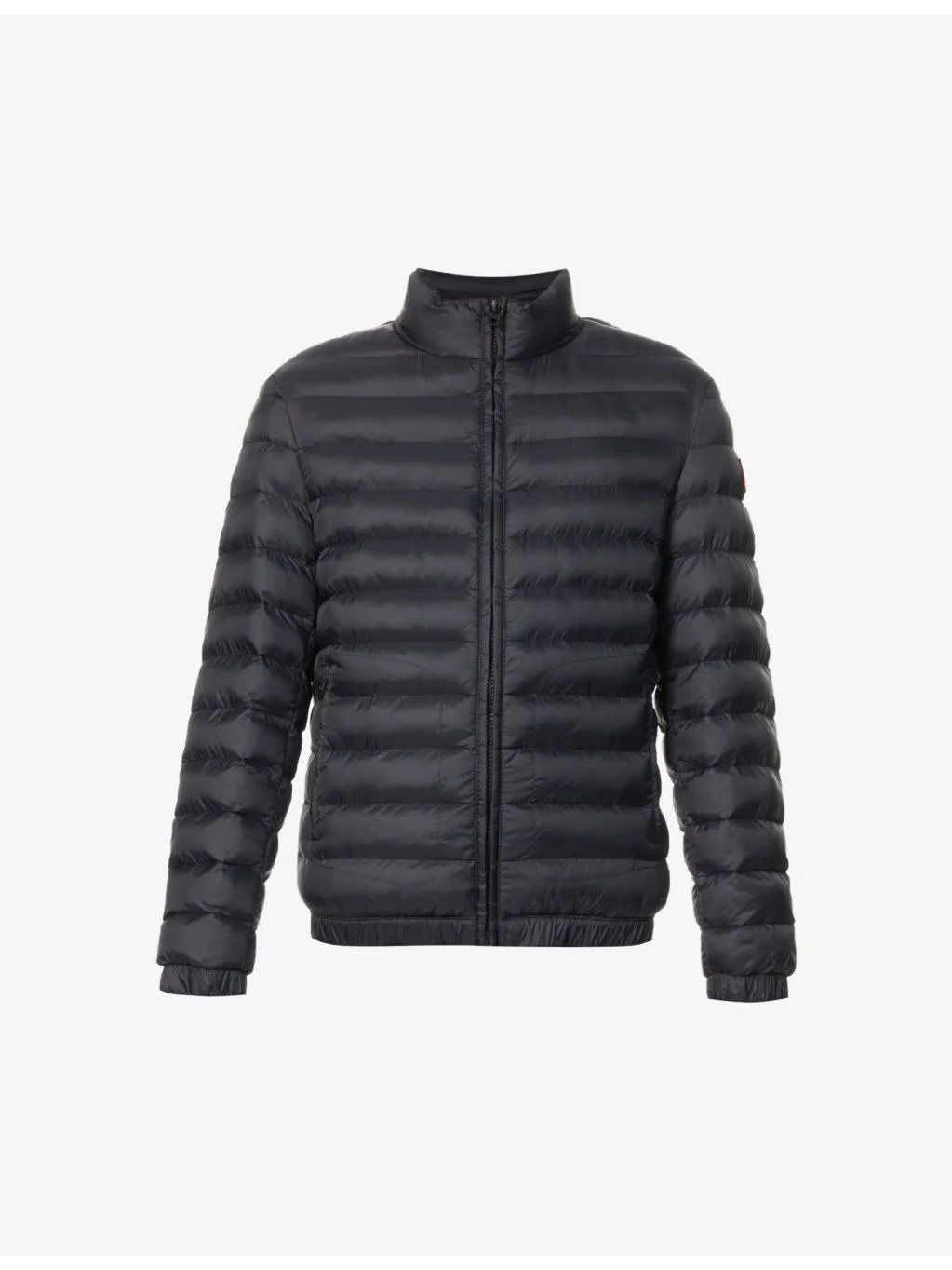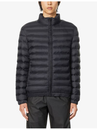 PRODUCT DETAILS - HUGO Hugo Boss shell jacket - 100% polyamide; lining 100% polyester - Concealed zip fastening - High neck, long sleeves, branded patch at sleeve, elasticated cuffs, padded, two zipped pockets at front, elasticated hem, fully lined - Dry clean - Size medium: Length 26in / 67cm, chest 42in / 107cm - Model is 6ft 2in/1.88m and wears a size medium - Heavyweight, non-stretch