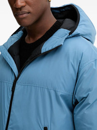 hooded zip-fastening jacket Highlights - Light blue - Hood - Zip fastening - Elasticated cuffs - Side zip pockets - Straight hem Imported Composition Fabric 100% Washing instructions Read Manufacturer Guidelines