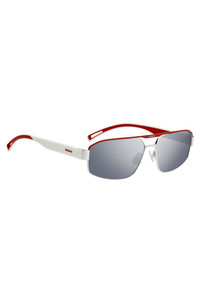 DETAILS Energize any look with the sporty two-tone design and branded bridge of these HUGO Menswear sunglasses. Rubber logo in a 3D effect. Wrap style. From a bold collaboration between HUGO Eyewear and VCARB, designed for rule-breakers, risk-takers and trendsetters. HUGO Eyewear is the official eyewear sponsor of VCARB. HG 1368/SKWX60T4 - 58610095