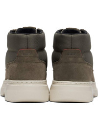 High-top suede and canvas sneakers. · Lace-up closure · Logo patch at tongue · Padded collar and tongue · Logo embossed at outer side and toe · Logo graphic embossed at layered heel tab · Jersey and suede lining · OrthoLite® insole · Treaded rubber sole Supplier color: Khaki Upper: leather, textile. Sole: rubber. Made in Lao Peoples Republic 261084M236001