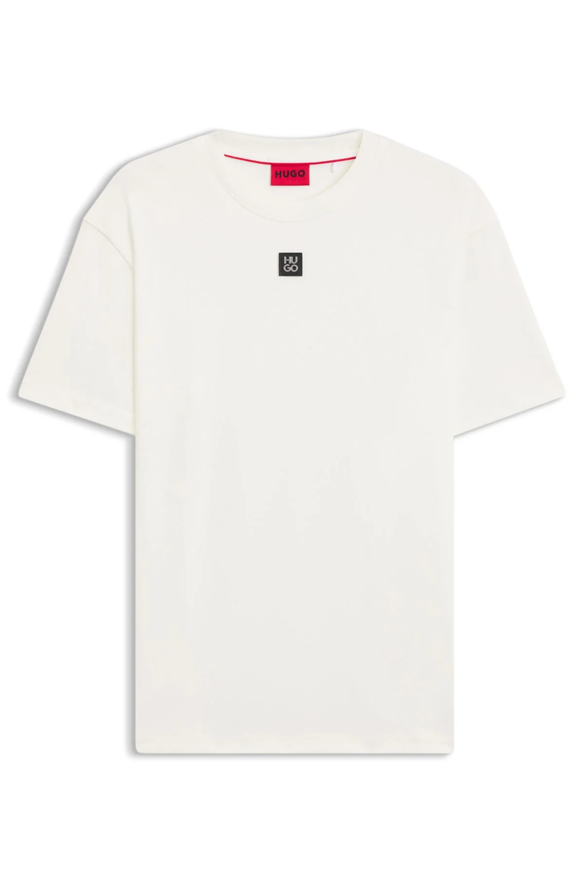 SIZE AND FIT The model wears a size M and is 6'2" tall with a, 35" chest, 27" waist and 35" hips. DETAILS Dalile - 50505201 This HUGO Menswear T-shirt is a versatile wardrobe staple. Made from soft, breathable interlock cotton for lasting comfort. Trimmed with a metal stacked logo. Regular fit Neckline: Crew neck Short sleeves QUALITY & CARE INSTRUCTIONS Do Not Tumble Dry Do Not Bleach Iron Low Heat Machine Wash Cold Gentle Quality: 100% Cotton, Collar: 94% Cotton, 6% Elastane Reduced Dry Clean