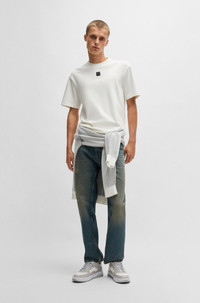 SIZE AND FIT The model wears a size M and is 6'2" tall with a, 35" chest, 27" waist and 35" hips. DETAILS Dalile - 50505201 This HUGO Menswear T-shirt is a versatile wardrobe staple. Made from soft, breathable interlock cotton for lasting comfort. Trimmed with a metal stacked logo. Regular fit Neckline: Crew neck Short sleeves QUALITY & CARE INSTRUCTIONS Iron Low Heat Machine Wash Cold Gentle Quality: 100% Cotton, Collar: 94% Cotton, 6% Elastane Reduced Dry Clean Do Not Bleach Do Not Tumble Dry