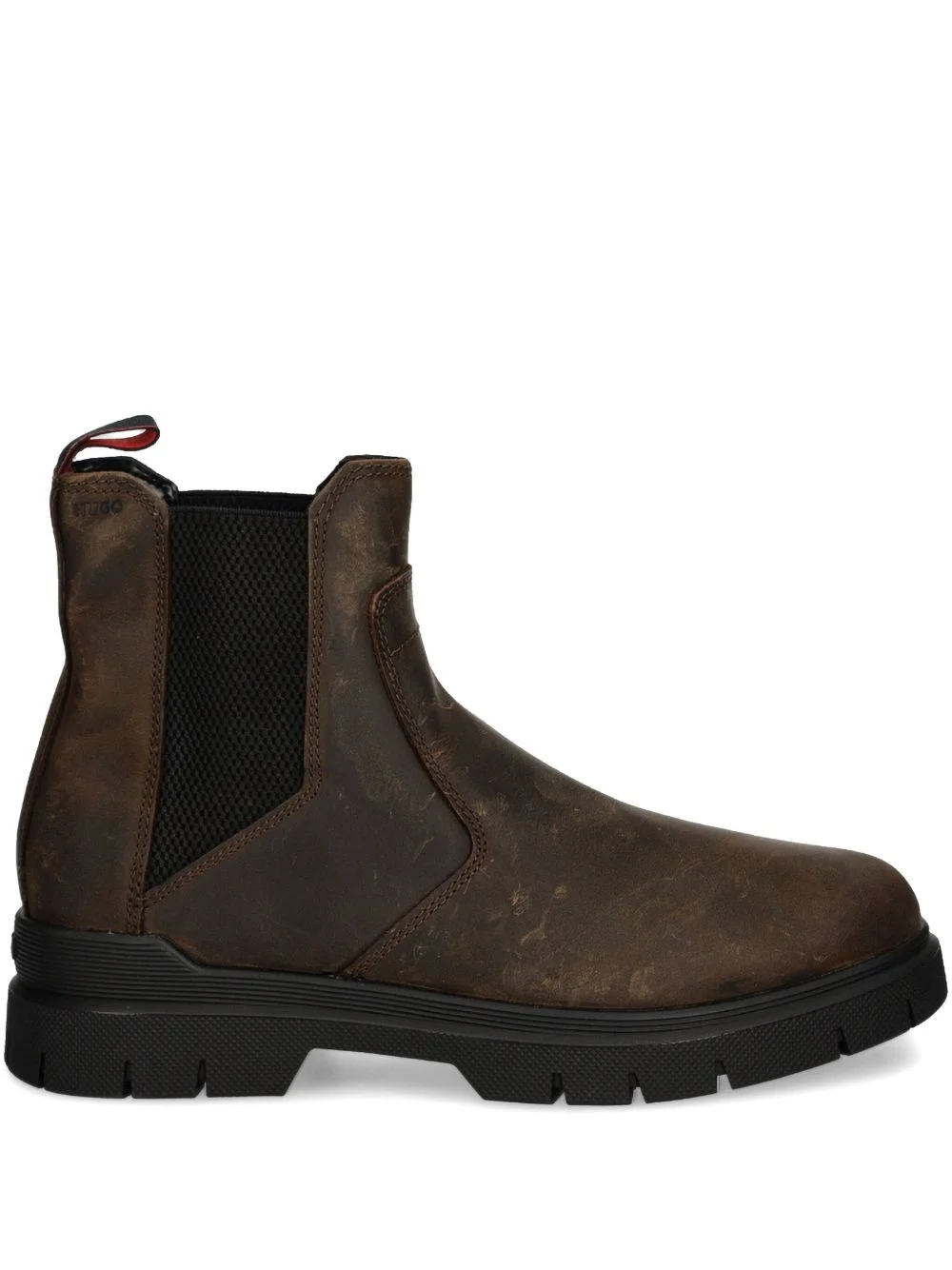 leather ankle boots Highlights - Brown - Slip-on style - Pull-tab at the heel - Elasticated side panels - Flat rubber sole Imported Composition Lining: Fabric 100% Sole: Rubber 100% Outer: Fabric 100%, Calf Leather 100%