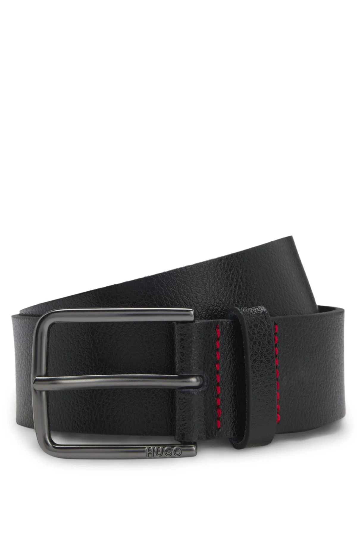 SIZE AND FIT The model wears a size 36 and is 6'1" tall with a, 33" chest, 28" waist and 34" hips. DETAILS Designed in leather with a rich grain, this HUGO Menswear belt will add a distinctive finish to any look. Red stitching. Gunmetal hardware. 3.5cm width. For the best fit, we advise ordering a belt one size larger than your waist size. Engraved logo on closure Width: 3,5 cm (1.4 inches) Hardware finishing: Brushed gunmetal hardware Partially lined Gerik-Lam_Sz35 - 50548348 QUALITY & CARE INSTRUCTIONS Quality: 100% Cow leather