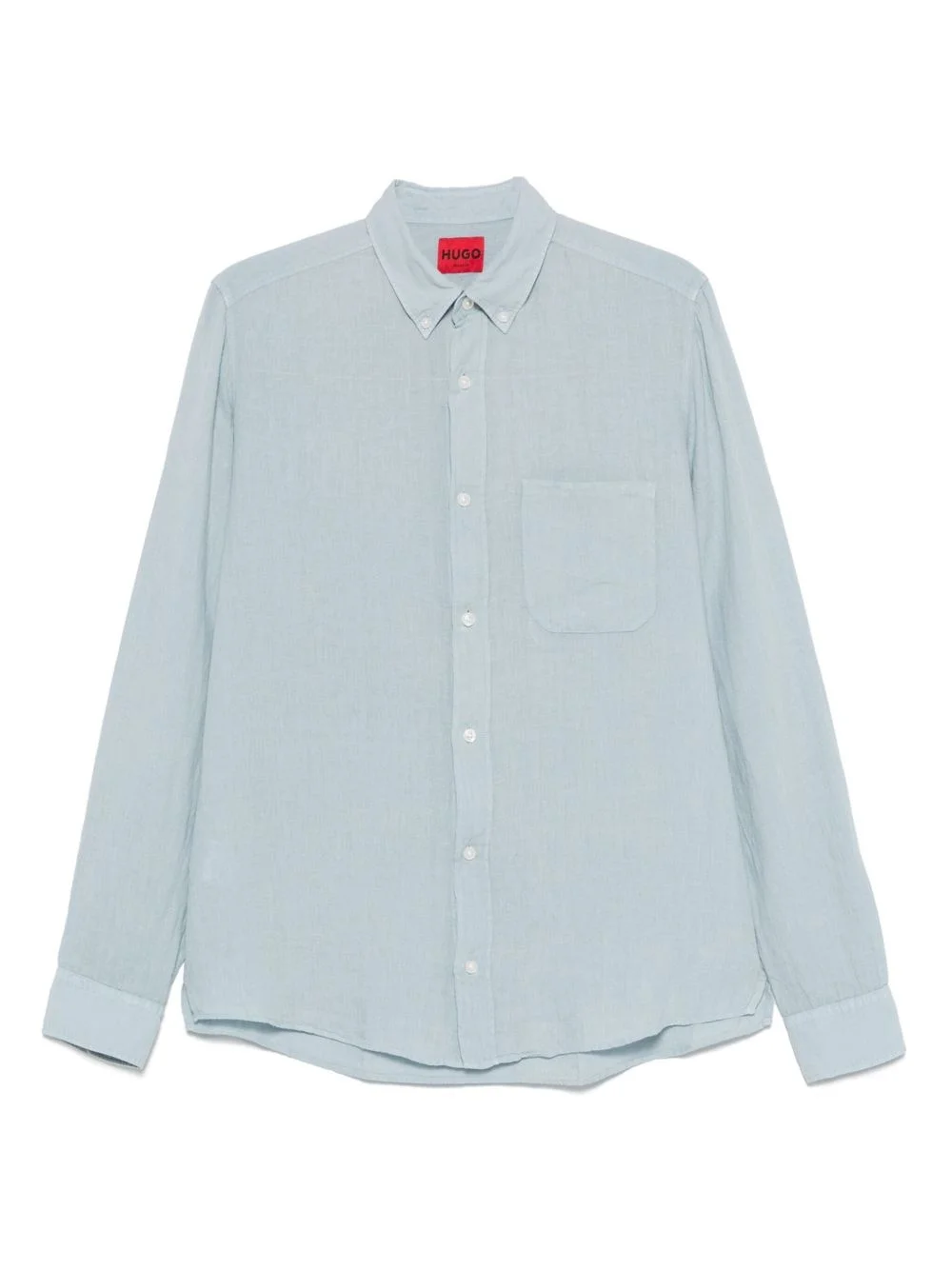 linen shirt Highlights - Light blue - Front button fastening - Chest patch pocket - Button-down collar - Shirt sleeves Imported Composition Linen/Flax 100% Washing instructions Machine Wash
