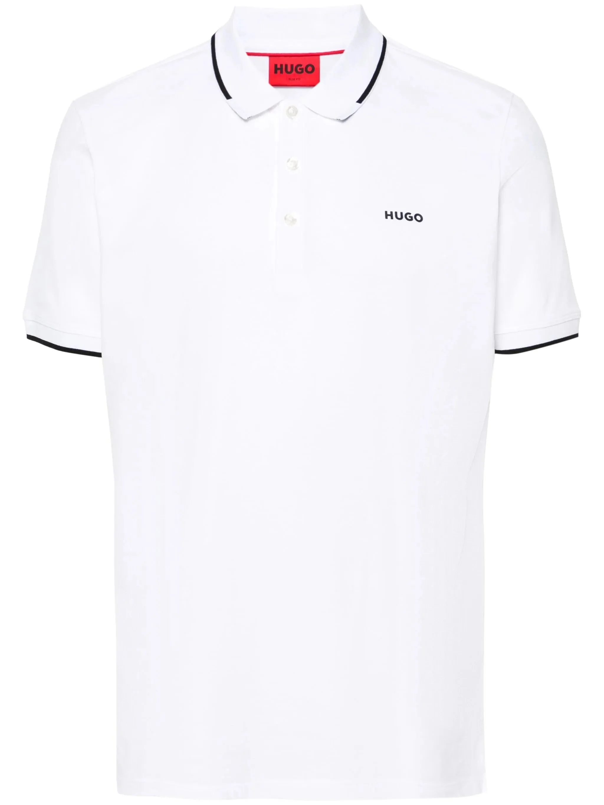 white cotton pique weave rubberised logo detail front button placket contrasting trim polo collar short sleeves short side slits straight hem - chest: 106.0 centimetres, length: 74.0 centimetres, sleeve length: 23.0 centimetres - Color: WHITE - Made in: Peru - Designer Style ID: 50467344 100 Composition and care Cotton: 92.0%, Spandex/elastane: 8.0%