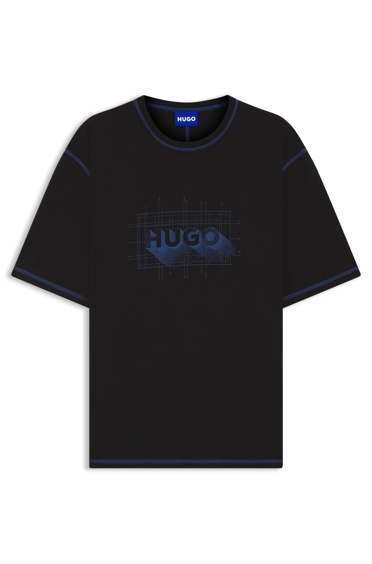 SIZE AND FIT The model wears a size M and is 6'2" tall with a, 35" chest, 27" waist and 35" hips. DETAILS Designed in breathable cotton for comfort, this HUGO Menswear T-shirt is a casual essential. Printed with creative logo artwork. Contrast cover stitching. Regular fit Regular fit Neckline: Crew neck Short sleeves Standard length Nothal - 50553498 QUALITY & CARE INSTRUCTIONS Material: 100% Cotton Do Not Dry Clean Machine Wash Cold Gentle Do Not Bleach Do Not Tumble Dry Iron Low Heat