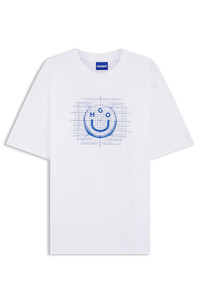 SIZE AND FIT The model wears a size M and is 6'2" tall with a, 35" chest, 27" waist and 35" hips. DETAILS Featuring creative logo artwork, this freshly styled HUGO Menswear T-shirt will update any casual look. Cut to a straight fit in soft cotton jersey. Regular fit Neckline: Crew neck Short sleeves Standard length Namerix - 50554350 QUALITY & CARE INSTRUCTIONS Machine Wash Cold Gentle Material: 100% Cotton Do Not Dry Clean Do Not Bleach Iron Low Heat Do Not Tumble Dry