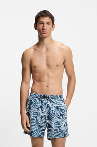SIZE AND FIT The model wears a size M and is 6'2" tall with a, 36" chest, 28" waist and 36" hips. DETAILS Update your packing list with the statement print of these HUGO Menswear swim shorts. Naturally quick-drying fabric. Subtle logo print. CALALA - 50510061 QUALITY & CARE INSTRUCTIONS Do Not Dry Clean Machine Wash Cold Do Not Tumble Dry Material: 100% Polyester, Lining: 100% Polyester Do Not Bleach Do Not Iron