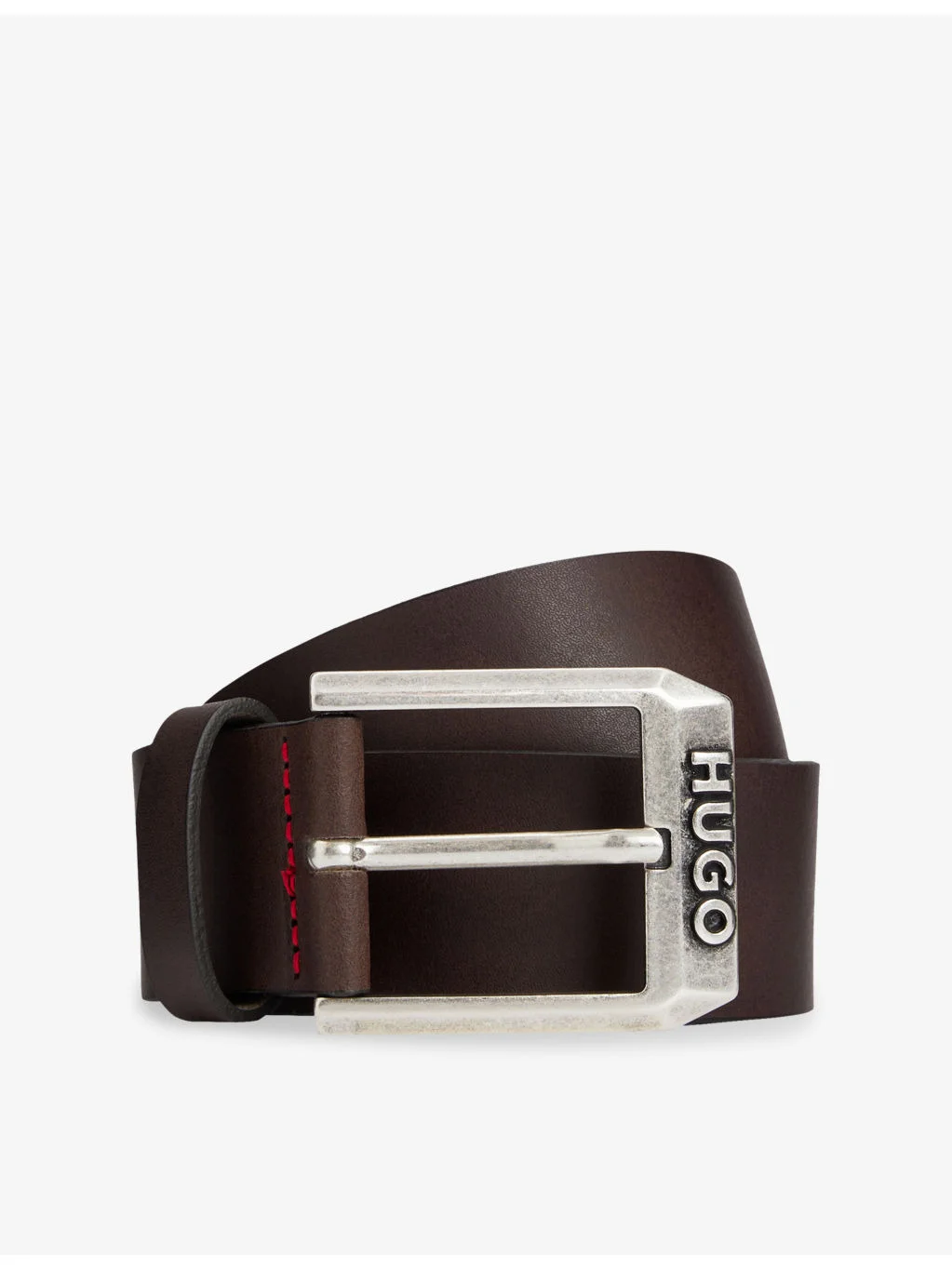 PRODUCT DETAILS - HUGO leather belt - 100% leather - Buckle fastening - Logo-embossed buckle, square end, contrast stitching, silver-tone hardware - Width 4cm - Specialist leather clean Ref: R03963127