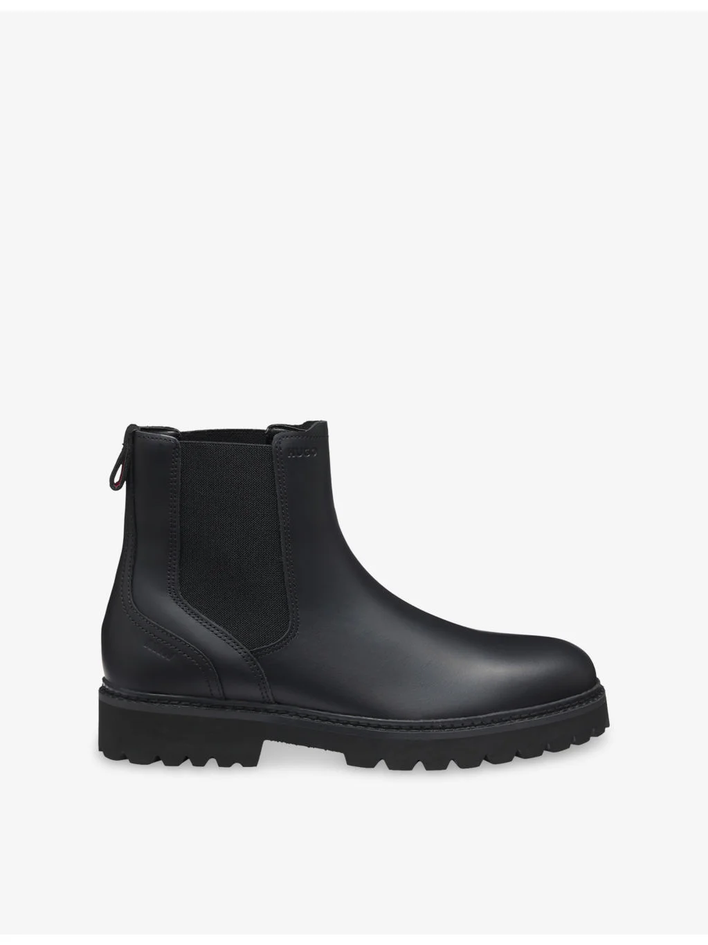 PRODUCT DETAILS - HUGO leather Chelsea boots - 100% leather - Closed round toe, ankle length, elasticated side gussets, embossed logo at cuff, layered detail at heel, pull-loop at back - Specialist leather clean - Upper: 100% leather - Lining: 100% polyester - Sole: 100% EVA Ref: R04512393