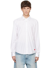 Slim-fit stretch cotton poplin shirt. - Spread collar - Button closure - Logo patch at shirttail hem - Adjustable single-button barrel cuffs Supplier color: Open White