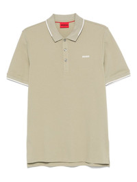 logo-embroidered polo shirt Highlights - Light olive green - Front button placket - Polo collar - Short sleeves - Straight hem Imported Composition Cotton 93%, Elastane 7%