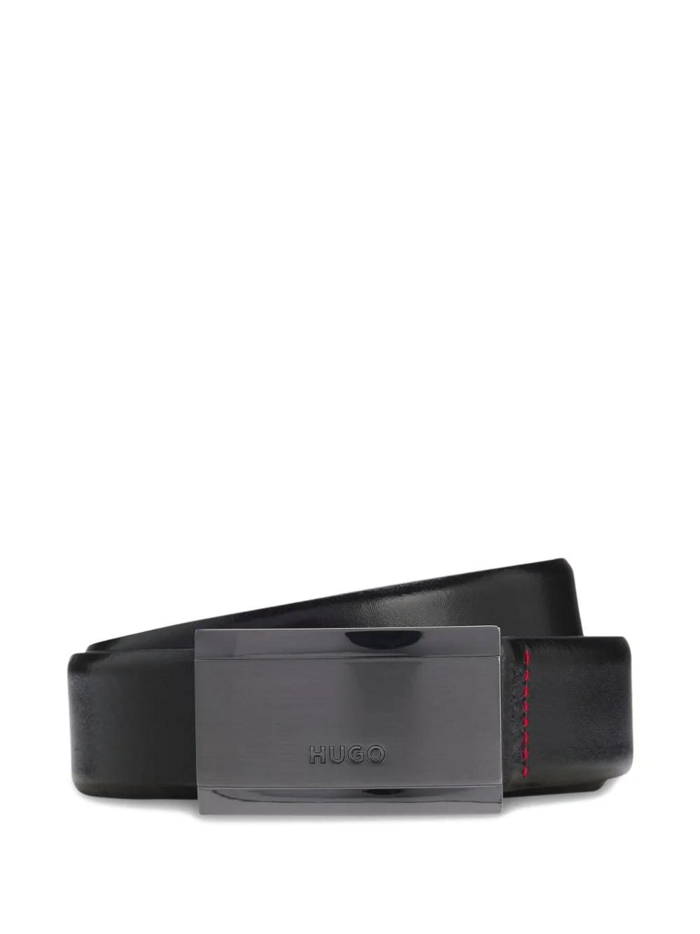 logo-engraved belt Highlights - Black - Top grain - Metal buckle - Red stitching Imported Composition Calf Leather 100% Washing instructions Read Manufacturer Guidelines