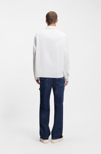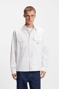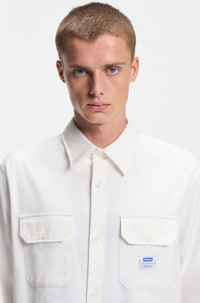 SIZE AND FIT The model wears a size M and is 6'2" tall with a, 35" chest, 27" waist and 35" hips. DETAILS A signature shirt by HUGO Menswear, featuring a special logo label. Crafted in cotton twill, this piece is topped with a Kent collar. Oversized fit Kentkragen Flap chest pockets Barrel cuffs Short length Fit back length: 72 cm (28 inches) Ekynone - 50520001 QUALITY & CARE INSTRUCTIONS Iron Low Heat Do Not Bleach Machine Wash Cold Do Not Tumble Dry Material: 100% Cotton Do Not Dry Clean