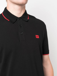 black/rose red cotton contrasting trim ribbed detailing logo patch at the chest polo collar front button placket short sleeves straight hem - Color: BLACK - Made in: Bangladesh - Designer Style ID: 50490775 001 Composition and care Cotton: 100.0%
