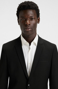 SIZE AND FIT The model wears a size 38R and is 6'2" tall with a, 36" chest, 28" waist and 37" hips. DETAILS ArtiM204X - 50446523 A fully lined jacket in super-flex cloth made with wool by HUGO Menswear. This single-breasted piece is tailored to an extra-slim fit. Extra-slim fit Notched lapels Number of buttons: 2 Welt chest pockets Pockets top: Flap pockets Side vent Fully lined Fit back length: 71 cm (28 inches) QUALITY & CARE INSTRUCTIONS Quality: 74% Virgin wool, 22% Polyester, 4% Elastane, Lining: 95% Polyester, 5% Elastane, Sleeve lining: 95% Polyester, 5% Elastane Do Not Bleach Reduced Dry Clean Do Not Tumble Dry Do Not Wash Iron Low Heat