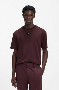 DETAILS Featuring a metallic stacked-logo badge at the center chest, this HUGO Menswear T-shirt is cut in luxuriously soft interlock cotton. Regular fit. Regular fit Neckline: Crew neck Short sleeves Dalile - 50505201 QUALITY & CARE INSTRUCTIONS Machine Wash Cold Gentle Iron Low Heat Do Not Tumble Dry Material: 100% Cotton Do Not Bleach Reduced Dry Clean