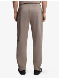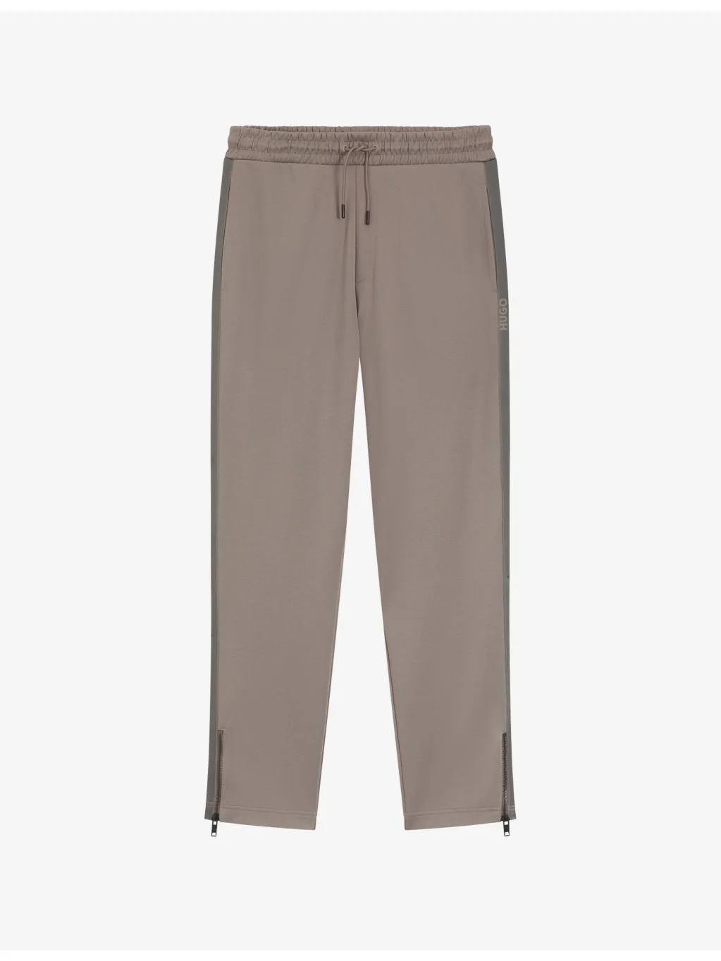PRODUCT DETAILS - HUGO woven tracksuit bottoms - 70% polyester, 30% cotton - Relaxed fit, mid rise, elasticated drawstring waistband, side pockets, brand print at side, contrast tape to sides - Machine wash cold - Lightweight, slight stretch Ref: R04605667