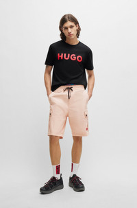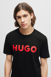 SIZE AND FIT The model wears a size M and is 6'2" tall with a, 36" chest, 32" waist and 37" hips. DETAILS Dulivio - 50467556 A statement T-shirt by HUGO Menswear, easy to style with any casual look. Regular fit Soft cotton. Large HUGO logo print across the chest. Regular fit Neckline: Crew neck Short sleeves QUALITY & CARE INSTRUCTIONS Do Not Tumble Dry Quality: 100% Cotton, Collar: 97% Cotton, 3% Elastane Machine Wash Cold Gentle Iron Low Heat Do Not Bleach Do Not Dry Clean