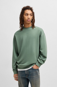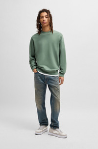 SIZE AND FIT The model wears a size M and is 6'1" tall with a, 33" chest, 25" waist and 35" hips. DETAILS Dapocrew - 50525892 A minimalist sweatshirt by HUGO. Featuring a high-density logo print at the chest, this essential layer comes in soft French-terry cotton. Relaxed fit. Relaxed fit Neckline: Crew neck Long sleeves Ribbed cuffs Standard length QUALITY & CARE INSTRUCTIONS Do Not Bleach Do Not Tumble Dry Quality: 100% Cotton Do Not Dry Clean Iron Low Heat Machine Wash Cold Gentle