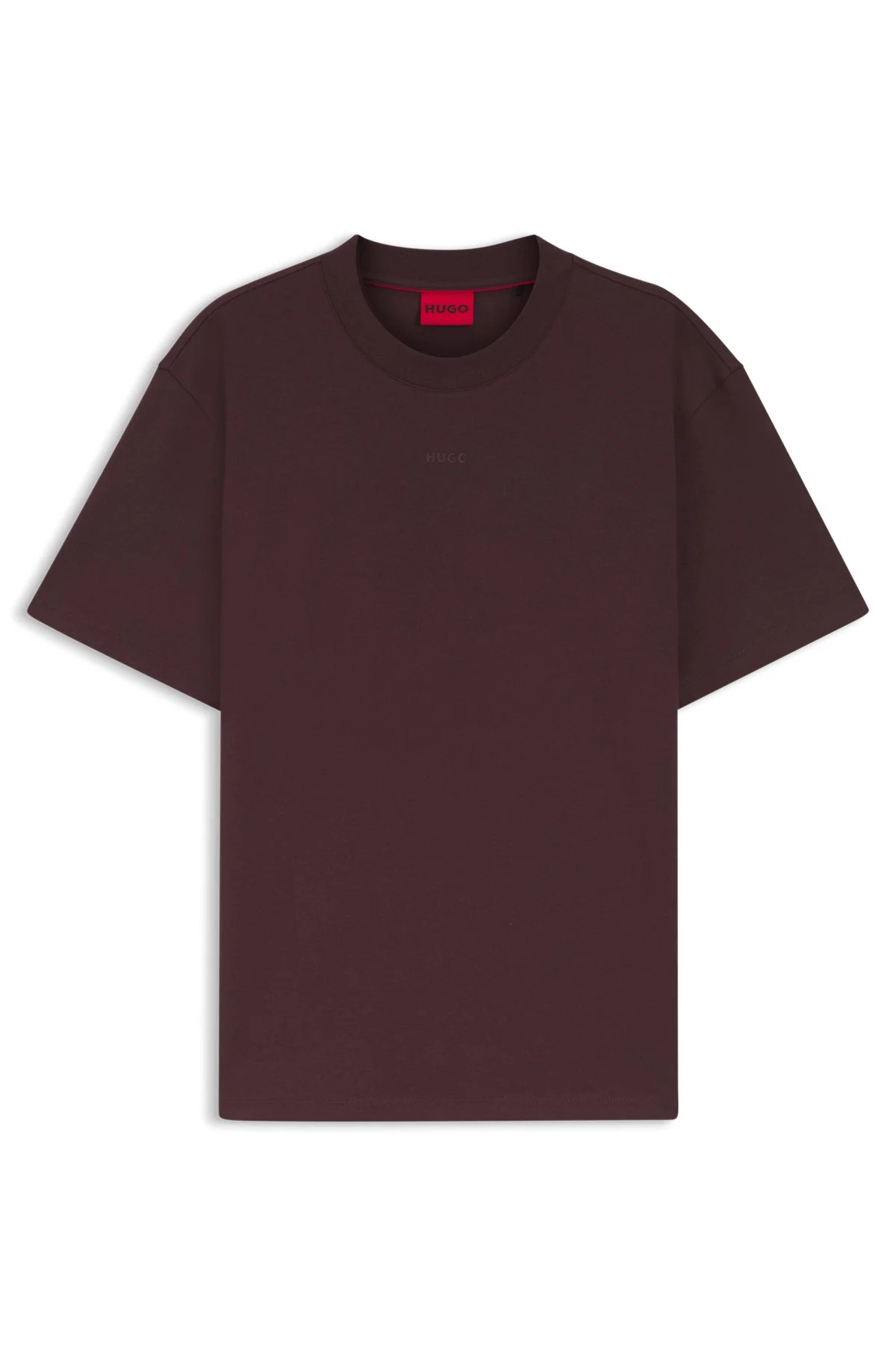 DETAILS A signature T-shirt by HUGO, featuring a logo print at the chest. This relaxed-fit top is crafted in cotton jersey with a weighty feel. Relaxed fit Short sleeves Dapolino - 50488330 QUALITY & CARE INSTRUCTIONS Iron Low Heat Do Not Bleach Machine Wash Cold Gentle Do Not Tumble Dry Material: 100% Cotton Do Not Dry Clean