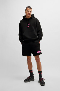 SIZE AND FIT The model wears a size L and is 0'0" tall with a, 0" chest, 0" waist and 0" hips. DETAILS Dapalmi - 50510005 Laid-back shorts in a relaxed fit by HUGO Menswear, designed in French terry with a melted-effect logo at the left leg. Relaxed fit Drawstring Pockets bottom front: Side pockets QUALITY & CARE INSTRUCTIONS Do Not Bleach Do Not Tumble Dry Quality: 100% Cotton Do Not Dry Clean Iron Low Heat Machine Wash Cold Gentle