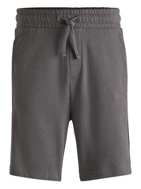 logo tape side cotton short Highlights - Medium blue - Cotton - Terry-cloth effect - Straight leg - Regular-rise waist - Elasticated drawstring waistband - Logo-tape detailing to the sides - Embroidered logo at the leg - Two diagonal pockets to the sides - Above-knee length Imported Composition Cotton 100% SIZE & FIT Model measurements Height 6 ft 2 in(1.87 m) Bust/Chest 34.25 in(87 cm) Hips 36.22 in(92 cm) Waist 29.52 in(75 cm) FittingInformation Designed for relaxed fit, offering a comfortable loose fit over the leg Adjust this piece’s waistband to your preference using the drawstring Made from a midweight non-stretch fabric, this piece offers minimal elasticity when worn This piece fits true to size – take your usual size