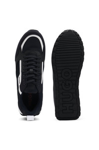 DETAILS Icelin_Runn_pumf_N - 50536568 Sporty trainers by HUGO. This retro-inspired pair is crafted in a mix of materials with a rubber base on a lightweight EVA outsole. Laces Fully lined Packaging: Box QUALITY & CARE INSTRUCTIONS Upper material: 100% Polyester, Lining: 100% Polyester, Sole: 75% Ethylene vinyl acetate, 25% Rubber, Facing: 50% Polyurethane, 55% Polyurethane, 50% Polyamid, 45% Polyester, Innersole: 100% Polyester