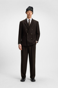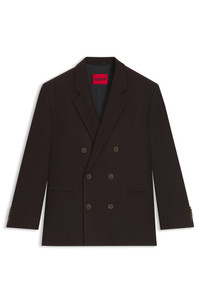 SIZE AND FIT The model wears a size 38R and is 6'2" tall with a, 34" chest, 29" waist and 35" hips. DETAILS Usmar253F1X - 50549673 Blended with rich wool, this HUGO Menswear blazer has a subtle herringbone weave. Cut to a modern fit with a double-breasted closure. modern fit Fully lined QUALITY & CARE INSTRUCTIONS Do Not Wash Do Not Bleach Reduced Dry Clean Do Not Tumble Dry Quality: 52% Polyester, 43% Virgin wool, 5% Elastane, Lining: 100% Polyester, Sleeve lining: 100% Polyester Iron Low Heat