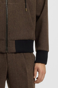 DETAILS Cut in herringbone cloth with wool and cotton, this HUGO Menswear jacket is a fresh take on tailoring. Adjustable hood. Modern fit. modern fit Unlined Hootailored253X - 50544683 QUALITY & CARE INSTRUCTIONS Do Not Bleach Do Not Wash Reduced Dry Clean Iron Low Heat Do Not Tumble Dry Quality: 36% Polyester, 34% Wool, 20% Cotton, 9% Polyamid, 1% Other fibres