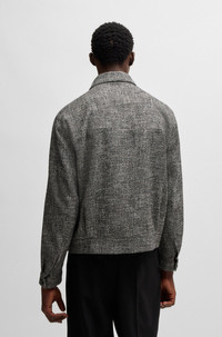 SIZE AND FIT The model wears a size 38R and is 6'1" tall with a, 32" chest, 27" waist and 33" hips. DETAILS Juliano244F1 - 50524900 A modern-fit jacket by HUGO, with a zip front and patch pockets. This piece is crafted in mouline tweed with cotton, silk and wool. modern fit Fully lined Fit back length: 62 cm (24 inches) QUALITY & CARE INSTRUCTIONS Do Not Tumble Dry Quality: 8% Virgin wool, 38% Cotton, 34% Polyester, 9% Viscose, 8% Polyacrylic, 3% Silk, Lining: 100% Polyester Do Not Wash Iron Low Heat Do Not Bleach Reduced Dry Clean