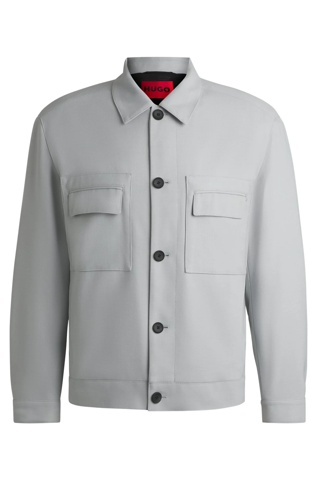 SIZE AND FIT The model wears a size 38R and is 6'2" tall with a, 34" chest, 29" waist and 35" hips. DETAILS Juliano243F1 - 50542694 An unconventional jacket by HUGO Menswear. In stretch twill, this piece comes in a modern fit with flap chest pockets and a button-up closure. Slim fit Number of buttons: 4 or more buttons Patch chest pockets Pockets top: Patch pockets Inside jet pocket with button Functional button Fully lined Fit back length: 69 cm (27 inches) QUALITY & CARE INSTRUCTIONS Iron Low Heat Do Not Wash Quality: 66% Polyester, 32% Viscose, 2% Elastane, Lining: 100% Polyester, Sleeve lining: 100% Polyester Reduced Dry Clean Do Not Bleach Do Not Tumble Dry