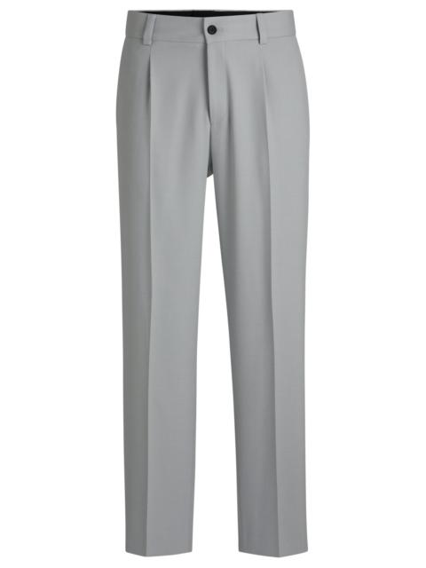 SIZE AND FIT The model wears a size 32R and is 6'3" tall with a, 35" chest, 31" waist and 35" hips. DETAILS Flips251X - 50538671 Easy-wear formal trousers in stretch twill by HUGO Menswear. This pair is cut to a modern fit with an ironed front crease. modern fit Fit foot width: 45,0 cm (17.7 inches) QUALITY & CARE INSTRUCTIONS Iron Low Heat Do Not Wash Reduced Dry Clean Do Not Bleach Do Not Tumble Dry Quality: 66% Polyester, 32% Viscose, 2% Elastane, pocketing: 65% Polyester, 35% Cotton