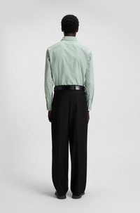 SIZE AND FIT The model wears a size 32R and is 6'1" tall with a, 33" chest, 28" waist and 34" hips. DETAILS With creases and pleats adding interest to the modern fit, these HUGO Menswear trousers will refresh your formal looks. Wool-rich superblack twill. modern fit Fit foot width: 49,5 cm (19.5 inches) Fedix251 - 50547242 QUALITY & CARE INSTRUCTIONS Do Not Tumble Dry Iron Low Heat Do Not Wash Do Not Bleach Reduced Dry Clean Quality: 70% Wool, 30% Polyester, pocketing: 65% Polyester, 35% Cotton, knee lining: 100% Viscose