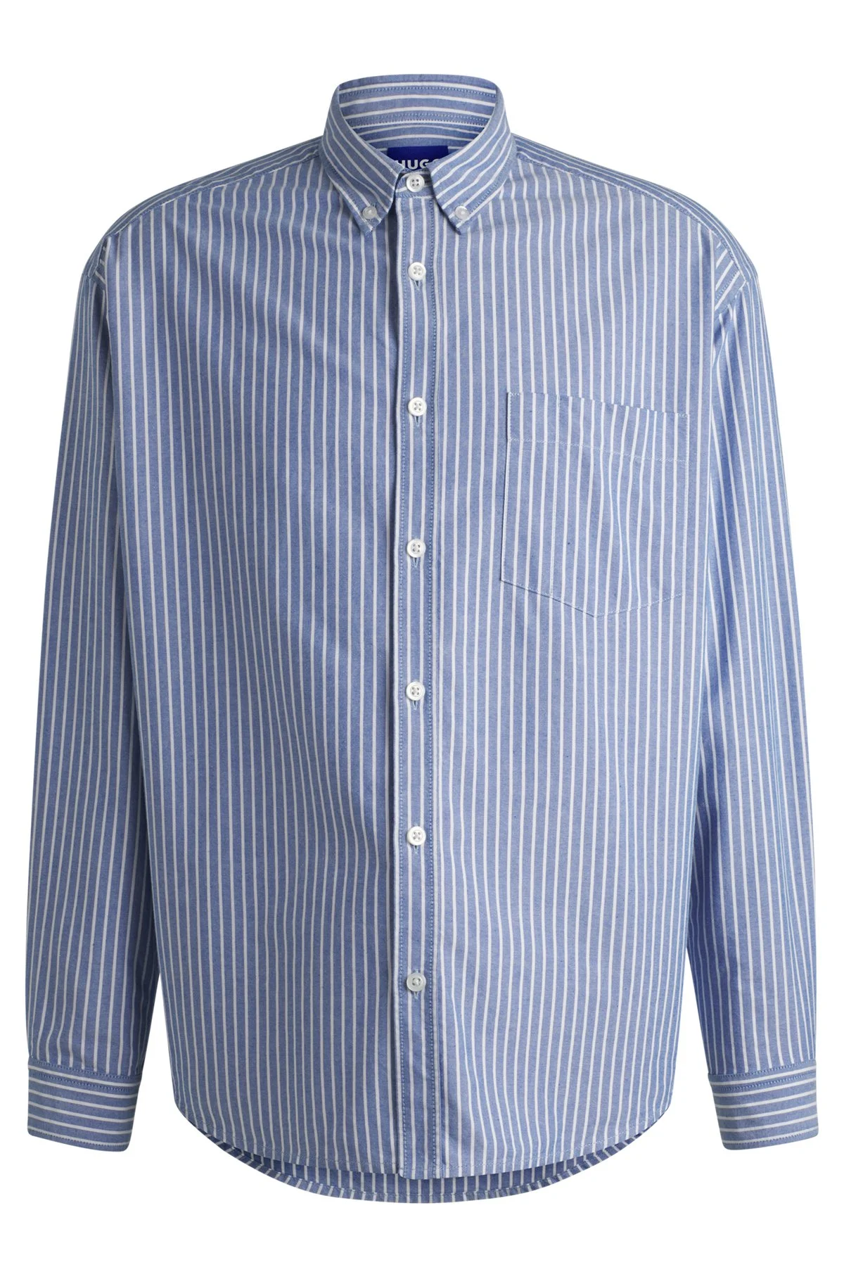 SIZE AND FIT The model wears a size M and is 6'2" tall with a, 31" chest, 26" waist and 35" hips. DETAILS Ebill - 50534183 A casual shirt with an Oxford weave by HUGO Menswear. This piece is cut to an oversize fit with a button-down collar. Oversized fit Button-down collar Patch chest pockets Barrel cuffs QUALITY & CARE INSTRUCTIONS Iron Low Heat Machine Wash Cold Quality: 100% Cotton Do Not Bleach Do Not Tumble Dry Do Not Dry Clean